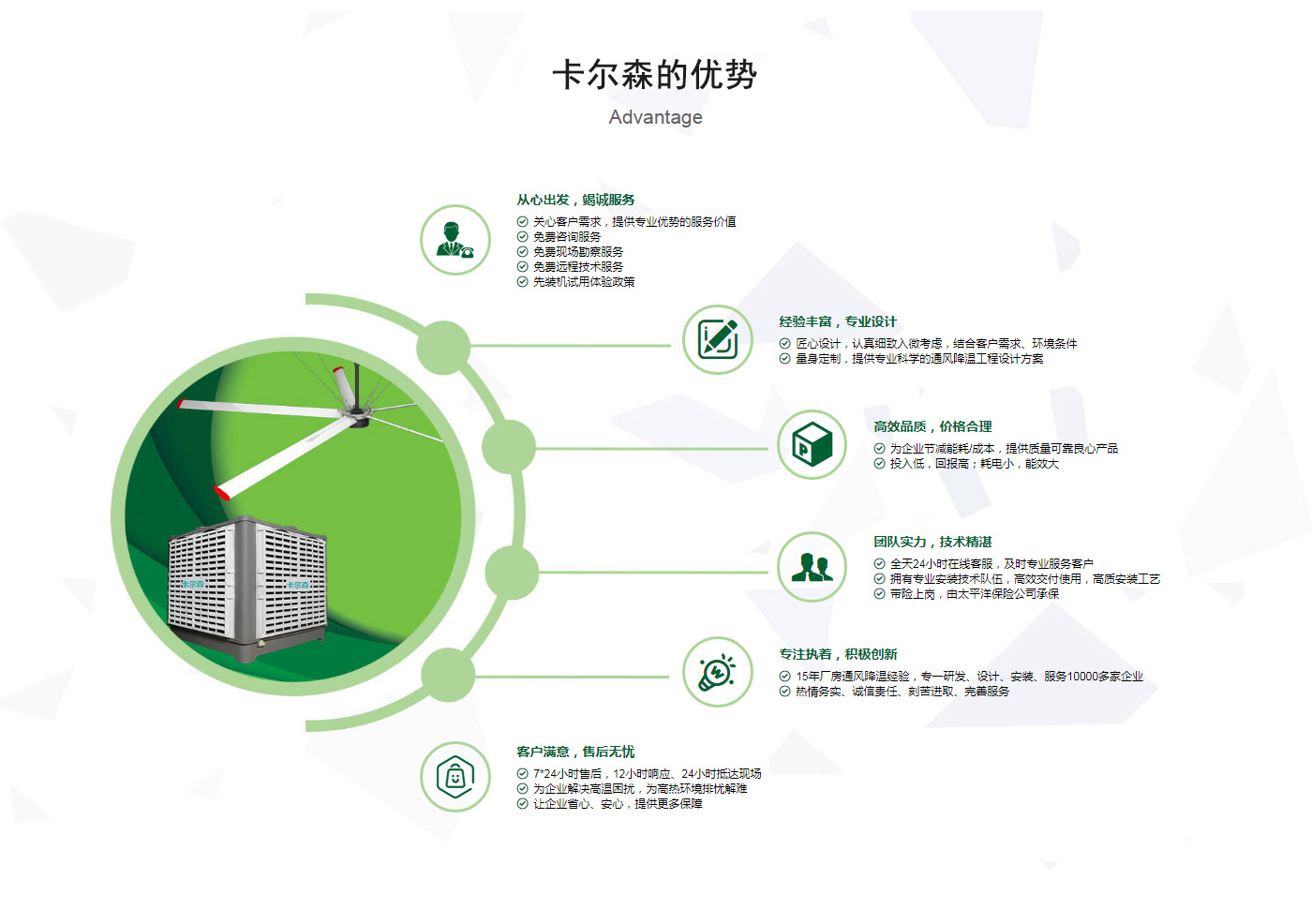 ??晉江市卡爾森機(jī)電設(shè)備有限公司是一家集設(shè)計(jì)、制作、銷售、安裝工業(yè)通風(fēng)設(shè)備、中央空調(diào)、節(jié)能環(huán)保空調(diào)、脈沖除塵設(shè)備、環(huán)境凈化工程、等環(huán)保工程企業(yè)。并提供環(huán)境影響評(píng)價(jià)、環(huán)保工程總承包、環(huán)保工程設(shè)計(jì)、環(huán)保工程運(yùn)營、環(huán)保工程成套設(shè)備等一站式服務(wù)。公司一直誠心服務(wù)于工業(yè)廠房的通風(fēng)設(shè)施,我們的產(chǎn)品:“品種齊全、質(zhì)量優(yōu)越”。根據(jù)客戶的需求精心設(shè)計(jì),高質(zhì)量的制造,力求使每個(gè)產(chǎn)品都達(dá)到合理耐用、節(jié)能環(huán)保。科學(xué)的設(shè)計(jì)和精美高品質(zhì)的產(chǎn)品,完善的服務(wù)系統(tǒng),加強(qiáng)售前、售中、售后服務(wù),對顧客在使用商品中出現(xiàn)的各種問題及時(shí)解決,使顧客無后顧之憂。產(chǎn)品廣泛適用于各類型制造業(yè)、機(jī)械類、五金冶煉、食品、化工、電子、紡織、噴涂、娛樂以及服務(wù)等場所。我們秉承“質(zhì)理過關(guān)、價(jià)格合理、交期準(zhǔn)時(shí)、服務(wù)周到”而受到新老客戶的好評(píng)和信賴。我們堅(jiān)持“客戶至上、質(zhì)量上乘”為宗旨,努力工作,為您換來潔凈美好的明天。卡爾森愿以過硬的質(zhì)量,良好的信譽(yù)同各界朋友一起開創(chuàng)更加輝煌的未來。